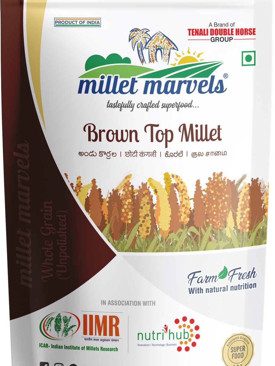 It is one of the rarest varieties of millets largely cultivated in the Andhra Pradesh and Karnataka border. It is said to be the powerhouse of minerals and also a rich source of fiber. Porridge and Upma are popular dishes made using Brown Top Millet.